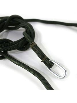 Corde nylon vert armée avec crochet et anneaux. Longueur réglable.