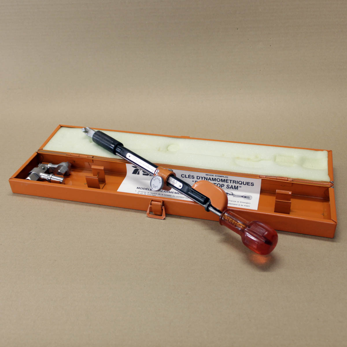 Clé vintage fonctionnelle et étalonnée (certificat d'étalonnage fourni) Outillage en dotation dans l'Armée de Terre dans les années 80. Clé indispensable aux mécaniciens. Fait partie du Lot 2.