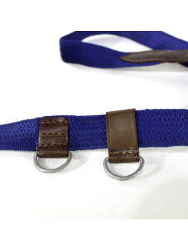 Ceinture bleu marine en mohair avec passants et extrémités en cuir.