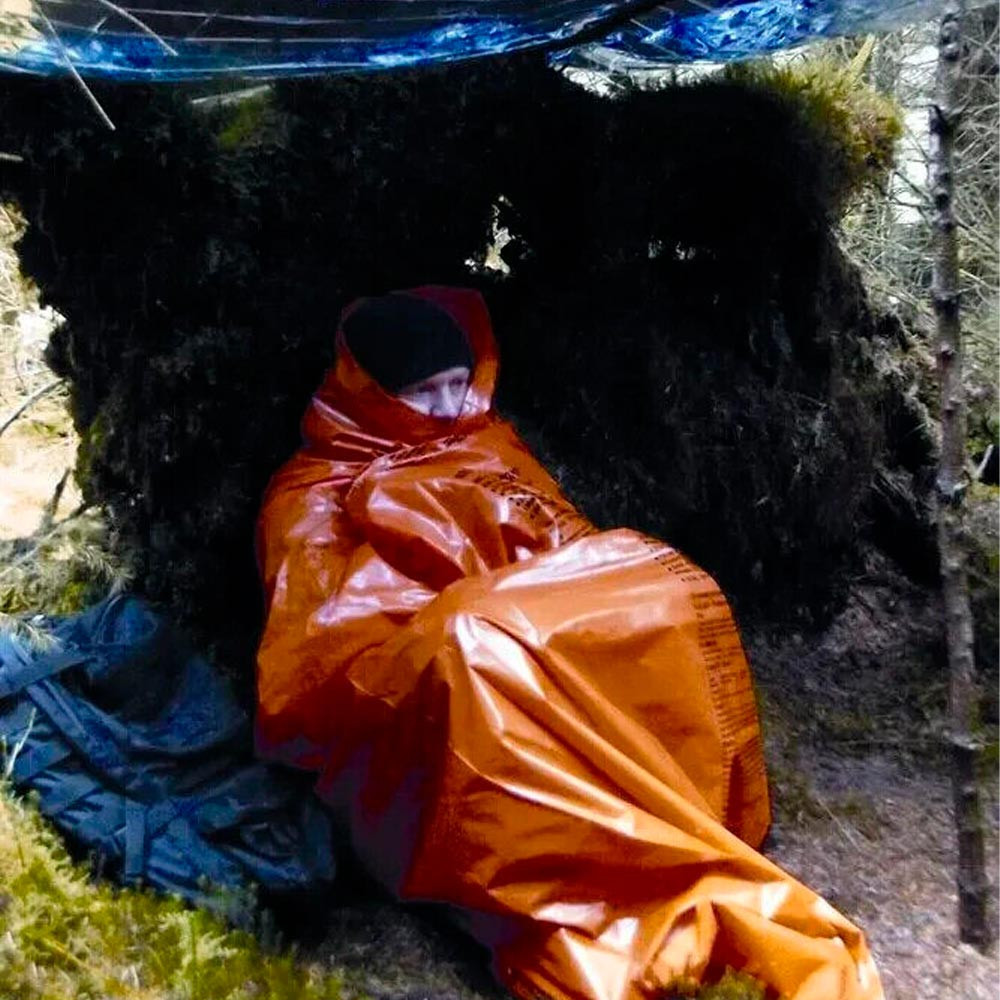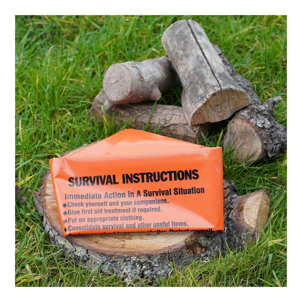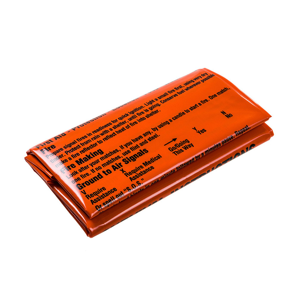 Un sac de survie, imprimé avec des informations de survie, haute visibilité, très haute protection contre le froid, la chaleur, l'humidité. Vous permet d'attendre les secours au chaud et au sec.