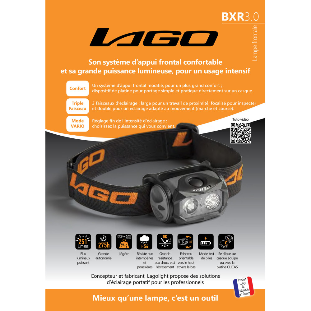 Un système d’appui frontal confortable et une grande puissance lumineuse, la lampe frontale BXR3.0, pour un usage intensif.