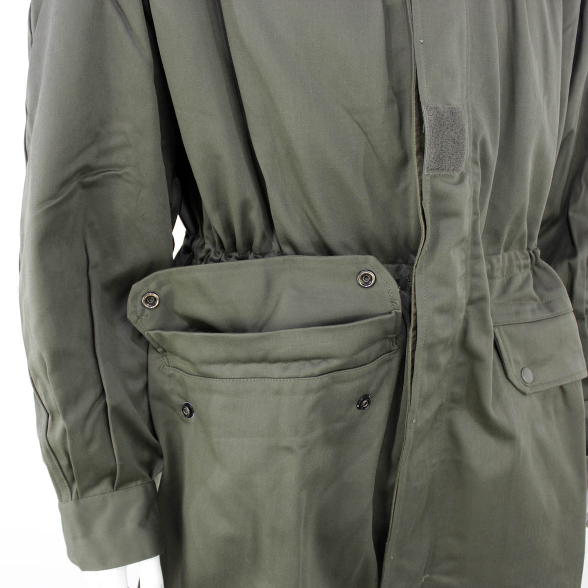 Le tissu de la parka reste du coton satin 300 g/m² comme la veste et le pantalon de la série M64.