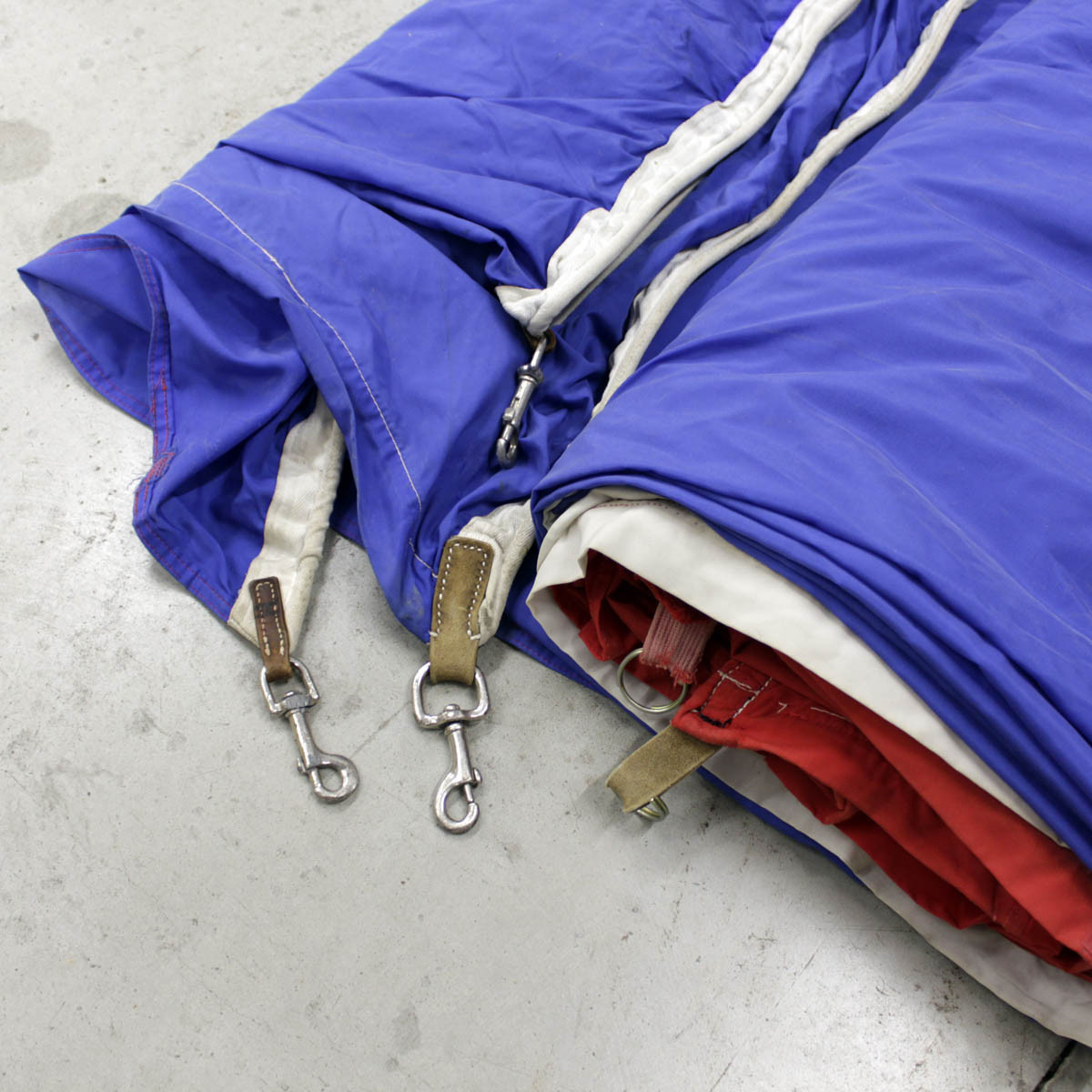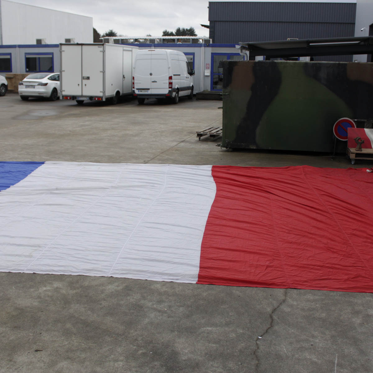 Drapeau en nylon avec traces de poussières ou tâches dues au stockage et à la prise de photos.