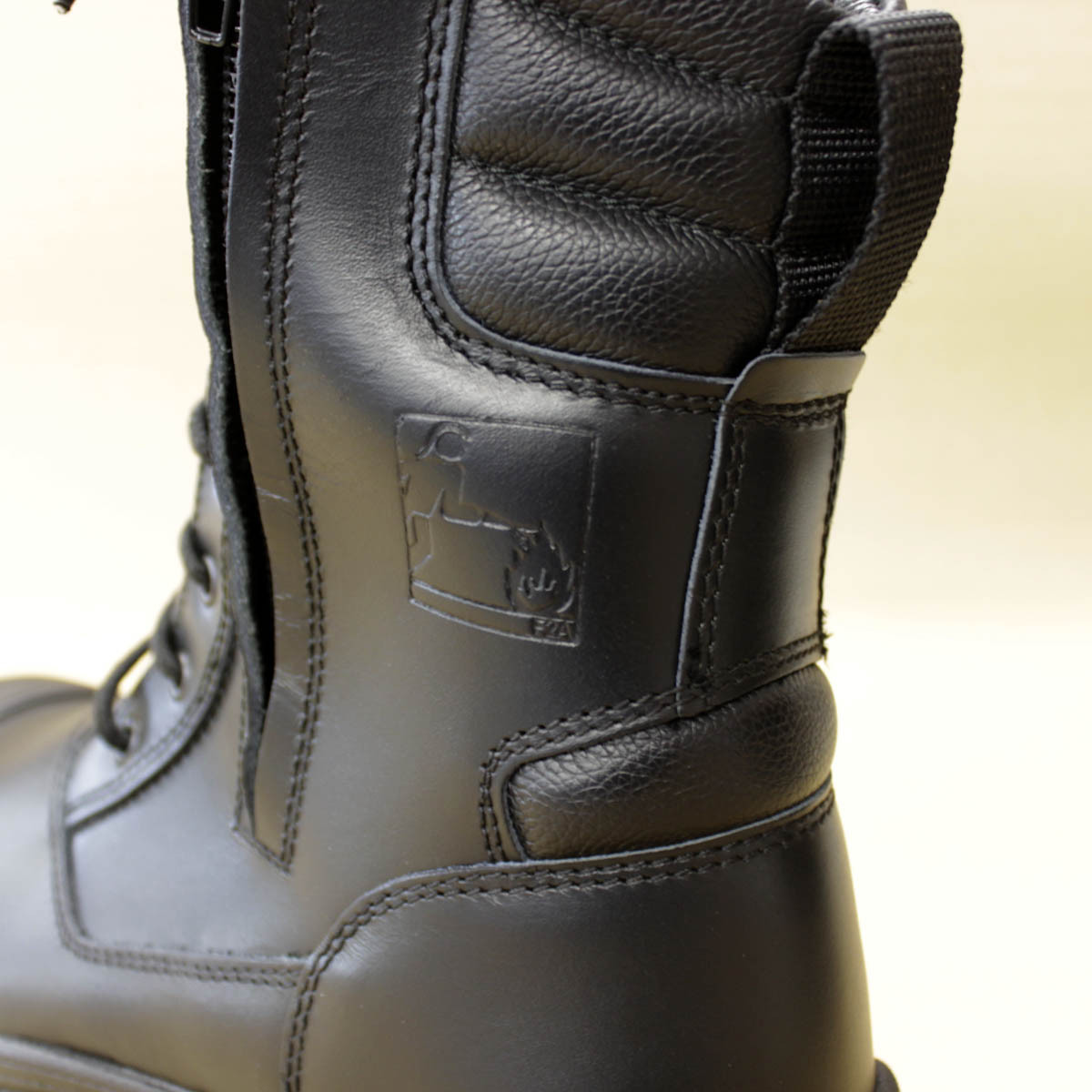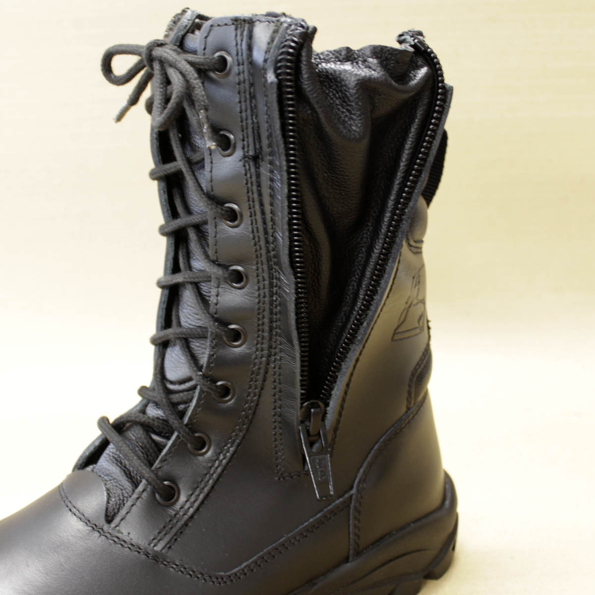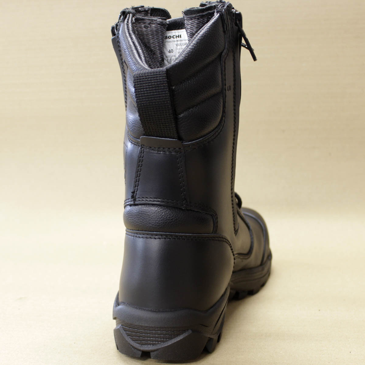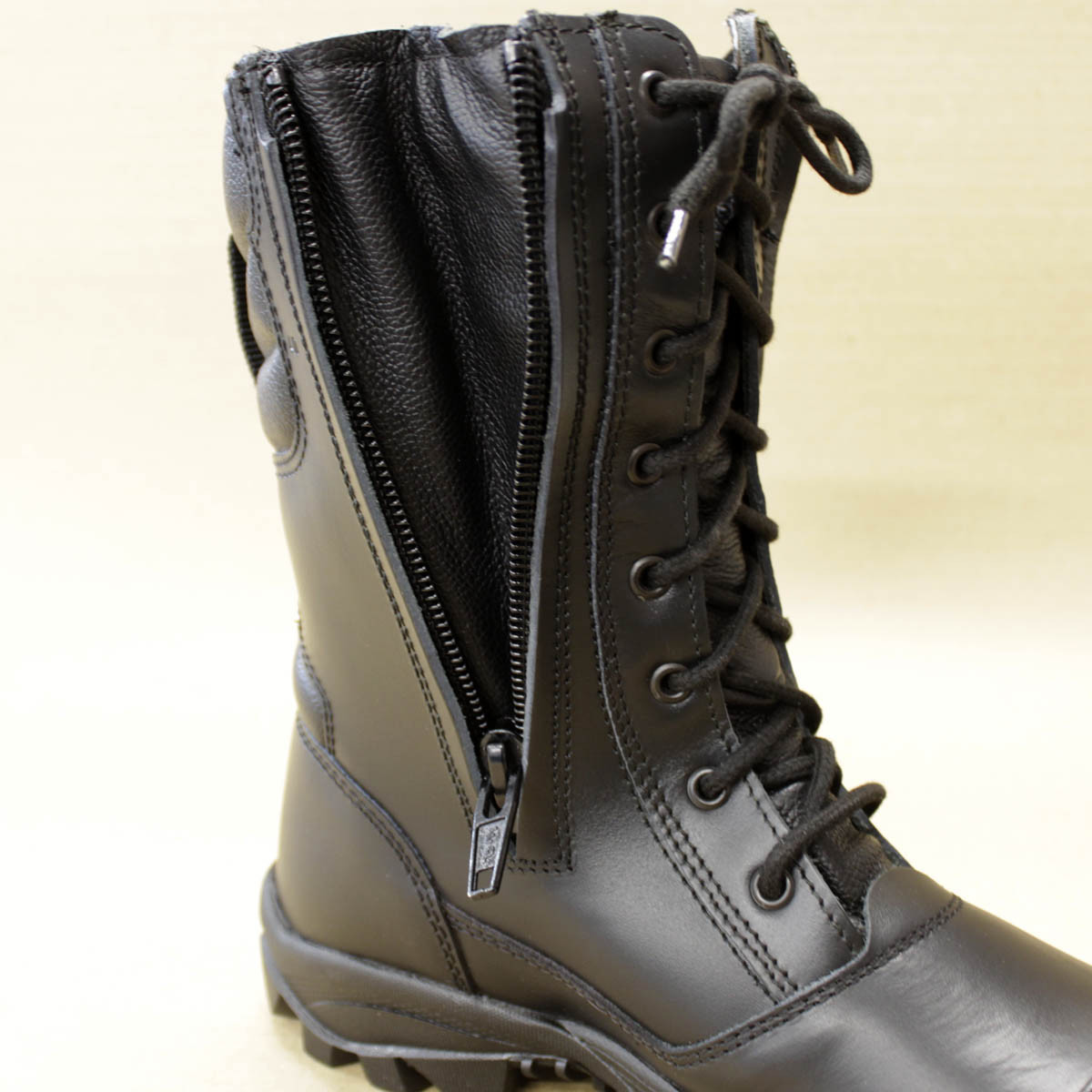 Rangers double zip en cuir avec embouts coqués, protection du métatarse et des malléoles.