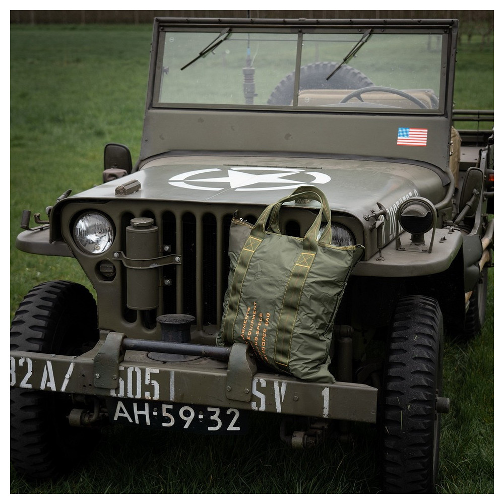 Découvrez le nouveau sac fourre-tout paratrooper pliable. Le sac est fabriqué en nylon 210T et se plie facilement, ce qui le rend assez compact pour l'emporter partout. Grâce au matériau déperlant, vos objets de valeur restent en sécurité même par mauvais temps.